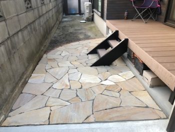 北九州市にて石張り(乱形石)をさせて頂きました。