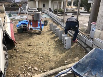 (ブロック積み作業中)